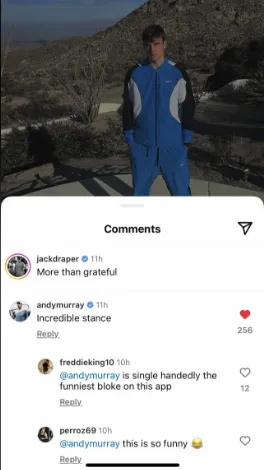 La joven promesa británica Draper subió a las redes sociales una foto suya con un idílico fondo montañoso. Aunque la foto fue recibida con aprobación por varios aficionados, Murray jugó al despiste al criticar de buen grado la postura de su compatriota.