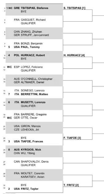 Mientras que para Tiafoe, se tratará de Marcos Giron o Jiri Lehecka. Otros emparejamientos incluyen a