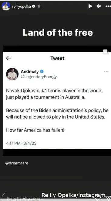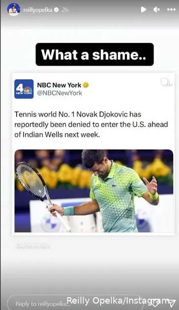 Al igual que su compatriota Isner, Opelka ha sido una persona bastante franca en muchas cosas, incluida la polÃtica. El estadounidense siempre estuvo del lado de Djokovic en el asunto del COVID y ya el año pasado abogó por que se permitiera la entrada del serbio en el paÃs. Tras conocerse la noticia de que no iba a venir a Indian Wells, Opelka tomó Instagram para expresar su decepción. Escribió "qué vergüenza" en su historia. A continuación, se burló del manto popularmente utilizado de "tierra de la libertad" para EE.UU. en referencia a otro tuit. Echa un vistazo a continuación.