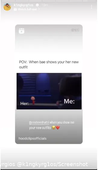 Kyrgios compartió un clip de Los Increíbles 2 que siente que lo representa a él y a su novia Costeen Hatzi.