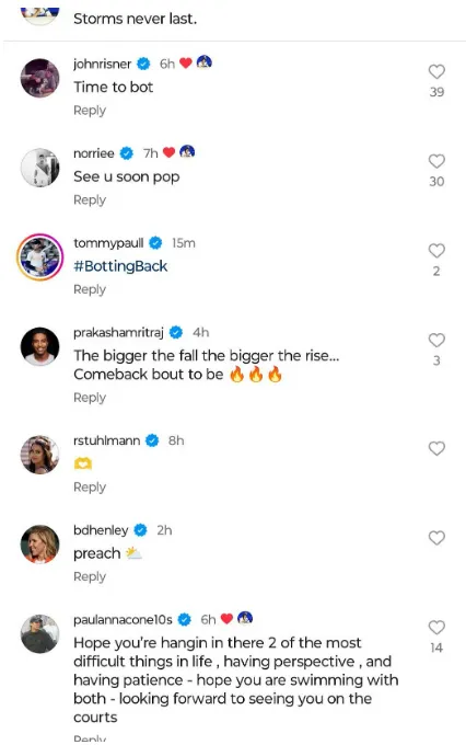 "Cuanto mayor es la caída, mayor es el ascenso... El regreso será a lo grande", afirmó Prakash Amritraj, ex tenista y reportero del Tennis Channel.