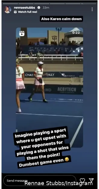 Stubbs, conocida por su aversión al pickleball, publicó el clip en su historia de Instagram mientras se burlaba de uno de los jugadores implicados.