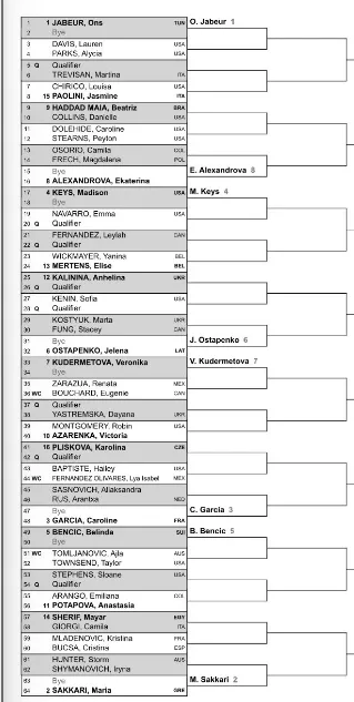 Cuadro del WTA Guadalajara Open AKRON 2023