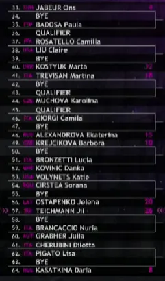 Swiatek está lista para una posible segunda ronda con Anastasia Pavlyuchenkova y se encuentra en la misma zona del cuadro que Elina Svitolina. Sabalenka podría empezar contra Sofia Kenin, que se enfrenta a Cristina Bucsa en la ronda inicial. Jabeur podría enfrentarse a Paula Badosa en la segunda ronda.