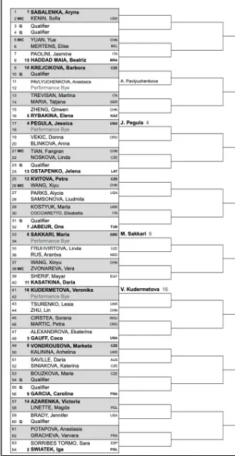 cuadro para la edición de la WTA del
