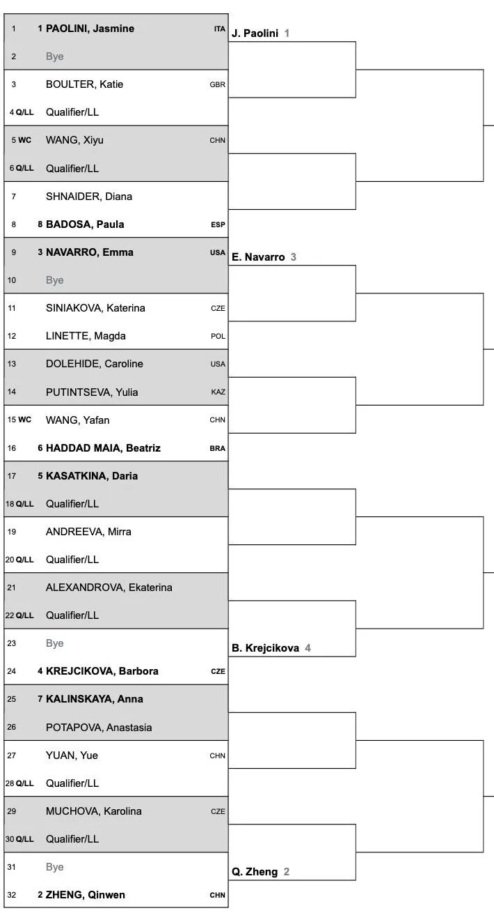 Navarro podría enfrentarse a Katerina Siniakova o Magda Linette y se encuentra en una sección más sencilla con Beatriz Haddad Maia como principal cabeza de serie. Otras cabezas de serie son Anna Kalinskaya contra Anastasia Potapova, Barbora Krejcikova es cuarta cabeza de serie y podría enfrentarse a Ekaterina Alexandrova.