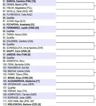 defensora y se enfrentará a una jugadora de la fase de clasificación. En su