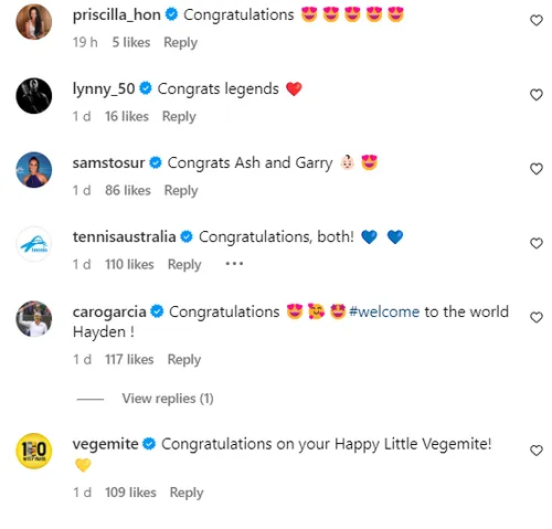 "Felicidades Ash y Garry", escribió su compatriota Sam Stosur.