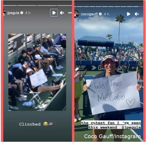 La tenista de 19 años compartió una foto de Pegula apoyándola en el partido decisivo de la serie, en el que Gauff formaba pareja con McNally. El cartel que sostenía Pegula rezaba: "Amamos a McCoco", en referencia al apodo del dúo. Las tenistas también compartieron imágenes del momento en sus historias de Instagram.