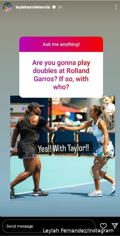 Tras sus éxitos en la pista y su química, no es de extrañar que formen equipo en Roland Garros. Fernandez confirmó la decisión durante una sesión de preguntas y respuestas en Instagram, cuando se le preguntó si participaría en la prueba de dobles de Roland Garros.