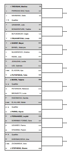 Alycia Parks también formará parte del cuadro, aunque se enfrentará a una clasificada. Tatjana Maria también jugará en el evento y también espera una clasificada. Sherif y Baindl son otras jugadoras interesantes.