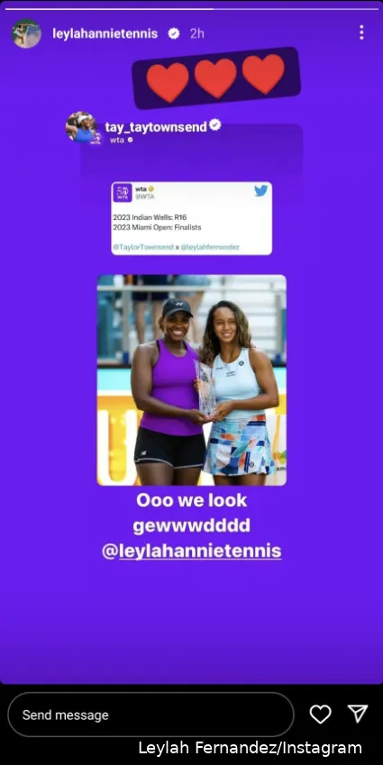 "Ooo nos vemos geewwdddd", escribió Taylor Townsend en Instagram, mientras Leylah Fernandez reaccionaba con emojis de corazón a un post que detallaba sus recientes resultados.