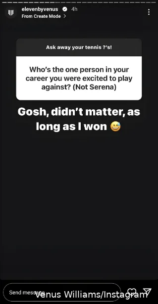 La siete veces campeona de Grand Slam compartió algunos datos interesantes, entre ellos que nunca le entusiasmó jugar contra ninguna jugadora en particular, excepto su hermana Serena, siempre que ganara.